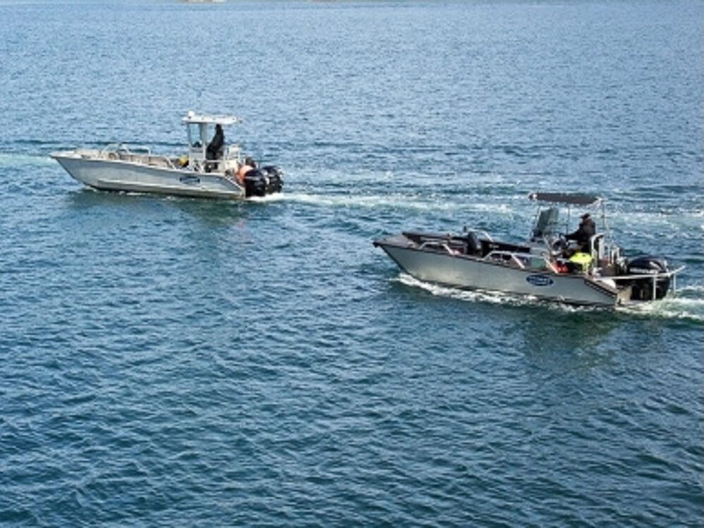 Corvallis, OR: The USGS Corvallis Research Group conducts water science research to support the needs of federal, state, and tribal partners. Their 24’ Munson research boat is outfitted with a large console T-top with canvas enclosure, seating for 4 persons, flip-up work table, lifting davit, side boarding door, 12V washdown pump, Lowrance 9” plotter/sounder with triple shot transducer, 9.9 hp kicker motor and EZ Loader trailer.