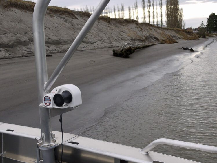 Kansas City, MO: The US Army Corps of Engineers Kansas City District manages 500 miles of the Missouri River. Their 24’ Munson is used as a hydrographic survey boat with aft moon pool and derrick for deploying a 45 lb. Reson 8124 multibeam transducer at survey speeds of 12-15 mph. Additional outfitting includes a Honda 6500 watt generator, 1000 watt inverter, air conditioned cabin with 3 work stations, motor guard, and triple axle trailer.
