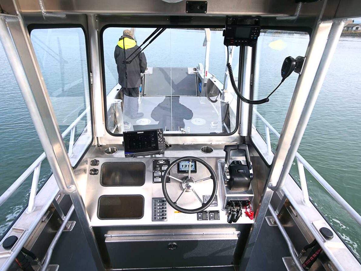 Klawock, AK: Located on the west coast of Prince of Wales Island, Klawock is home to the first salmon cannery and oldest salmon hatchery in Alaska. The 24’ Valhalla Boat was built to take advantage of the exceptional fishing and hunting in the area. Options include a bow control station, side boarding door, kicker bracket and trim tabs. The cabin incorporates a Webatso forced air cabin heater and seating for persons.