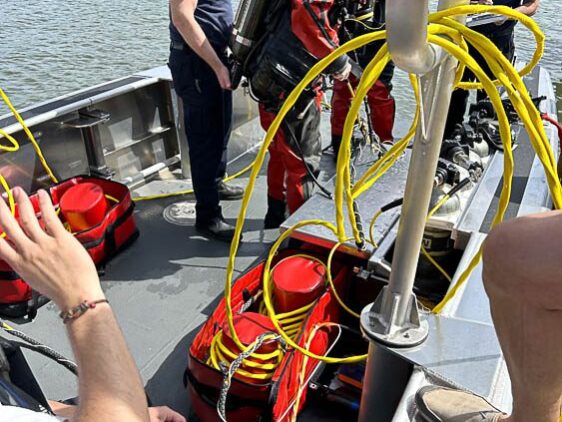 Olympia, WA: Washington State DOT is responsible for performing bridge inspections and prioritizing maintenance work on over 7300 bridges. They selected this 26’ Munson trailerable dive boat for conducting underwater bridge inspections throughout the state. Outfitting includes scuba bottle racks, large HP cylinder rack, port & starboard side dive doors and bow door dive ladder. The cabin is outfitted with seating for five persons, Webatso diesel cabin heater and flip-up work table.
