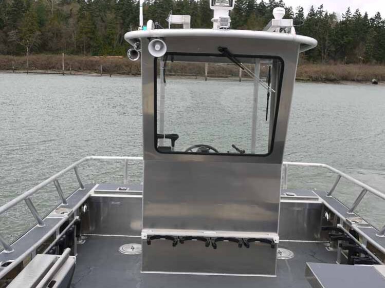 Eagle, AK: Yukon-Charlie Rivers National Preserve protects the undeveloped Charley River and a significant portion of the upper Yukon in east central Alaska. The National Park Service is responsible for this preserve and maintains a number of public use cabins and facilities along their 106 miles of river. Their 28’ Munson is used for transporting research teams to remote areas, as well as supplies and equipment which includes a Kawasaki Mule side by side. Outfitting includes an outboard motor guard, tow post, davit, and canvas enclosure to protect the operator.