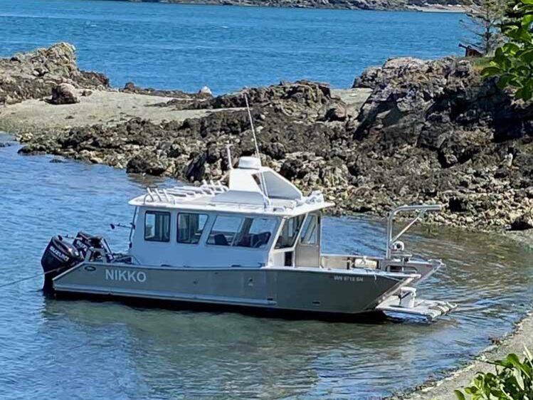 Guemes Island, WA: This 28’ Packcat is used to enjoy all that the San Juan Islands have to offer. A Steelhead Marine crane with wireless controls allows for easy deployment of a Highfield aluminum hull dinghy from the cabin roof. Twin Honda 250’s are installed with Optimus 360 joystick controls with station hold capability. The pilot and co-pilot seats are installed on AirWave suspension bases. Additional outfitting includes a porta-potti, Scotty downriggers, davit with 12V windlass, cabin heater, SeaDek marine flooring, stereo and mooring bridle.