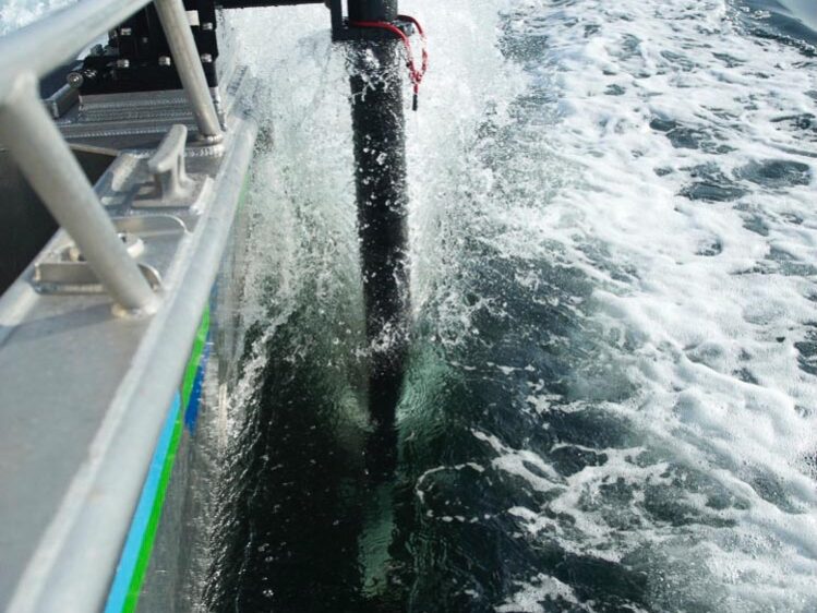 Chicago, IL: Collins Engineers, Inc. performs underwater inspections and construction support for projects throughout the United States. Their 28’ Packcat dive boat is used for hydrographic surveying, bridge inspection, dredging engineering, and hydroelectric dam assessments. Outfitting includes a heated cabin with diver control station, dive bottle racks, hose racks, side dive doors, anchor windlass, fresh water wash down, Lowrance HDS-12 plotter/sounder, hydrographic sonar mounts, 2800 watt inverter, and triple axle trailer.