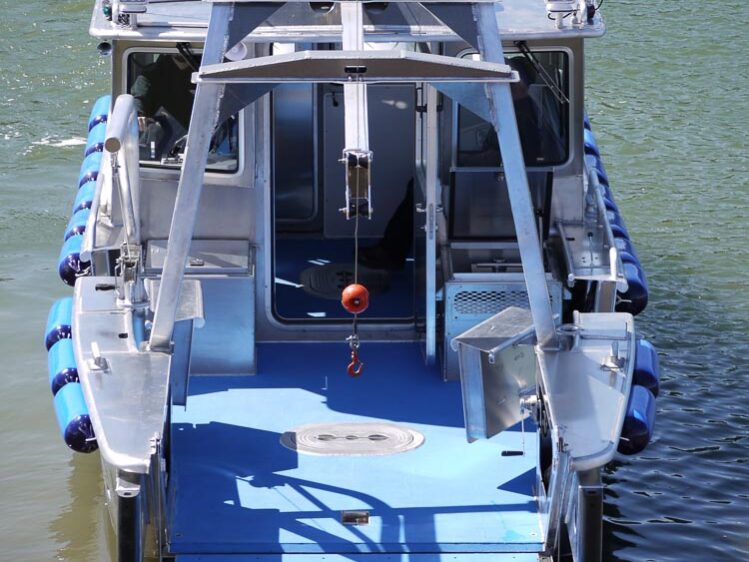 Naples, FL: Collier County is known for its Paradise Coast of Naples, Marco Island & the Everglades. Collier County Coastal Zone Management serves to protect, preserve and enhance its pristine coastal ecosystem and facilities. Their 28’ Munson is used for for servicing aids to navigation, diving, and environmental response. Outfitting includes removable bow scaffolding, port & starboard dive doors, dive bottle rack, MaxiLift 1100 lb telescoping crane, tow post, motor guard and trailer.