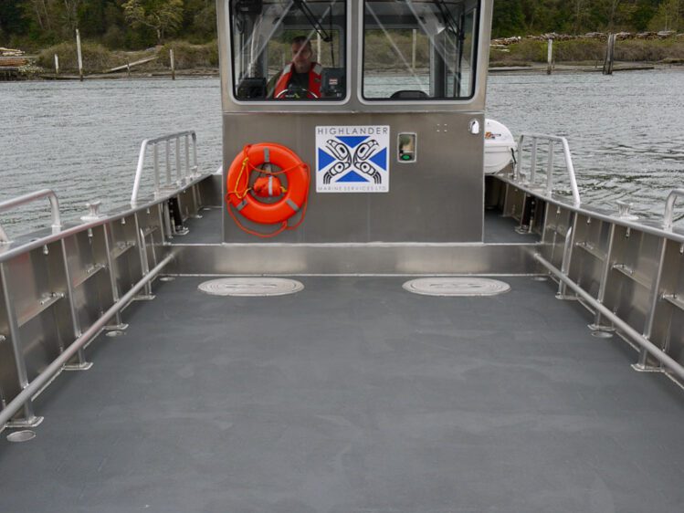 Prince Rupert, BC: Highlander Marine Services provides fast, efficient and economical year round transportation in the remote regions of northern British Columbia. The M/V Highland Ranger is Transport Canada certified for 12 passengers and up to 3 tons of cargo. The cabin is outfitted with both diesel and propane heaters, shock mitigating seats, and convertible bunk for overnight accommodations. A triple axle trailer was supplied to provide over the road transport.