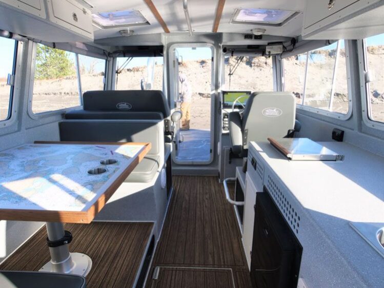 Deadhorse, AK: Alaska Clean Seas is a non-profit oil spill response cooperative who protects the environment by providing effective response services to the Alaska North Slope Crude Oil Producers. The 32’ Oliktok Guardian is assigned to ENI Petroleum operations and is tasked with transporting personnel, equipment and boom deployment for near shore response operations. Special arctic features include storm covers for cabin windows and forced air diesel cabin heater. The large walk through cabin provides seating for 8 passengers.