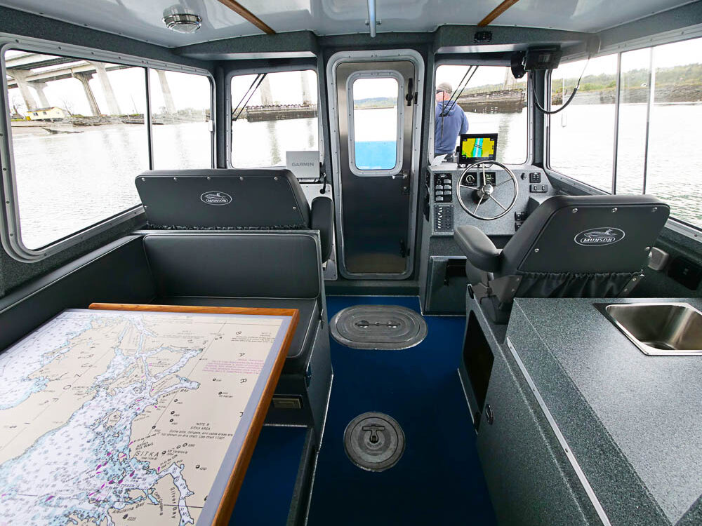 Blake Island, WA: Blake Island State Park is a 472-acre, marine camping park with 5 miles of beach shoreline that is accessible only by boat. Washington State Parks selected this 32’ Munson for a servicing the year round camping facilities. Outfitting includes an elevated walk around wheelhouse, Webatso forced air cabin heater, cargo deck tie down pockets, tow post, Garmin navigation electronics and EZ Loader trailer.