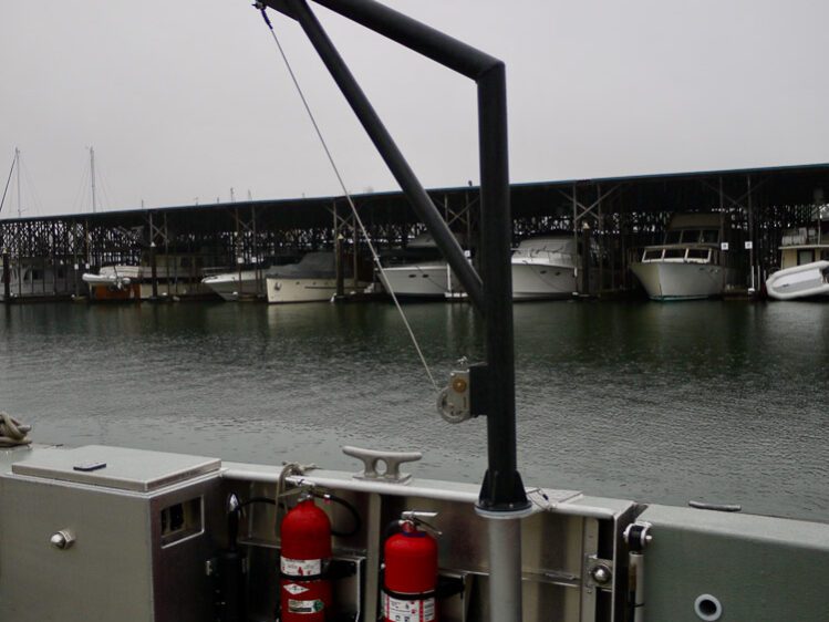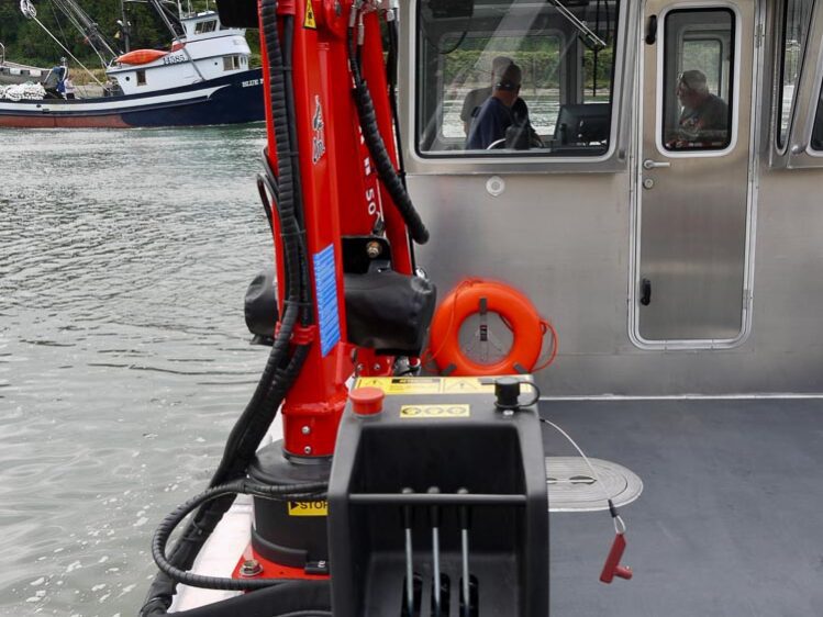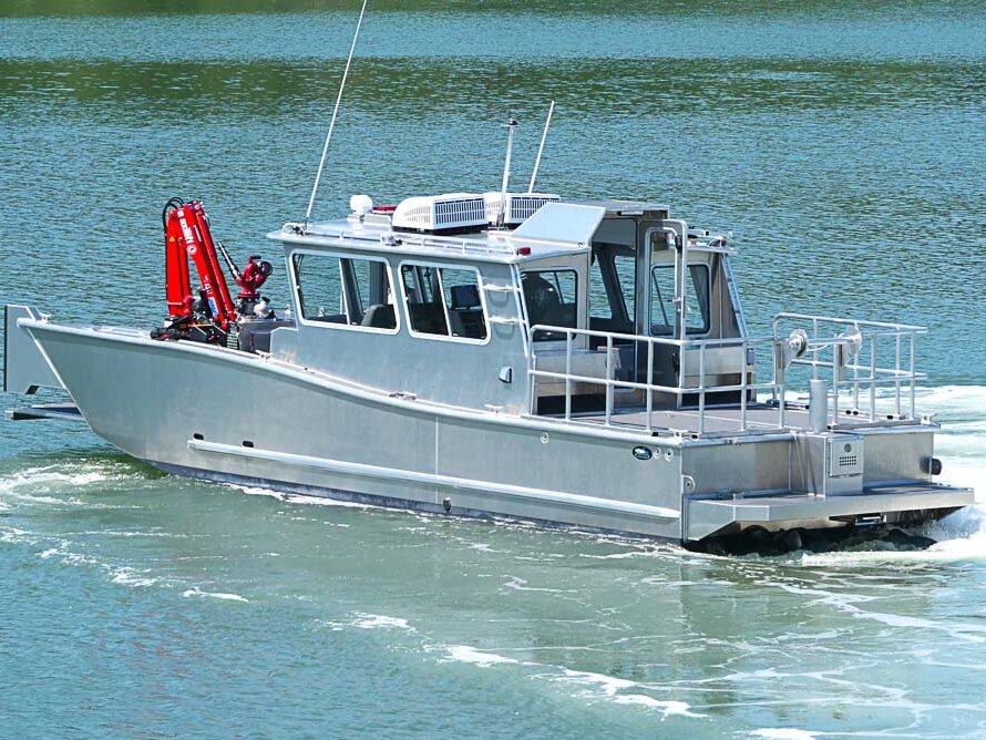 Coeur d’Alene, ID: Kootenai County Parks & Waterways oversees and maintains 44,000 navigable acres of water and 25 docking facilities in Northern Idaho. Their 35’ Munson is equipped with a Maxilift M.150 hydraulic crane for maintaining navigation buoys and anchors. A portable skid mounted 500 GPM pump with monitor is used for firefighting operations. The large air conditioned cabin incorporates seating for 8 persons with galley and work table. The stern incorporates a large swim step, integrated dive ladder and hot water shower wand.
