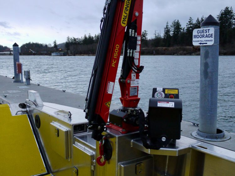 Friday Harbor, WA: San Juan County Public Works Department is responsible for the design, construction and maintenance of all County roads, buildings and Solid Waste Transfer Stations within the county. Several of their sites lie on islands not accessible by ferry traffic. Outfitted with a hydraulic deck crane, flood lighting, and cargo tie down rails, San Juan's Munson is used to transport work crews and materials to these remote sites.
