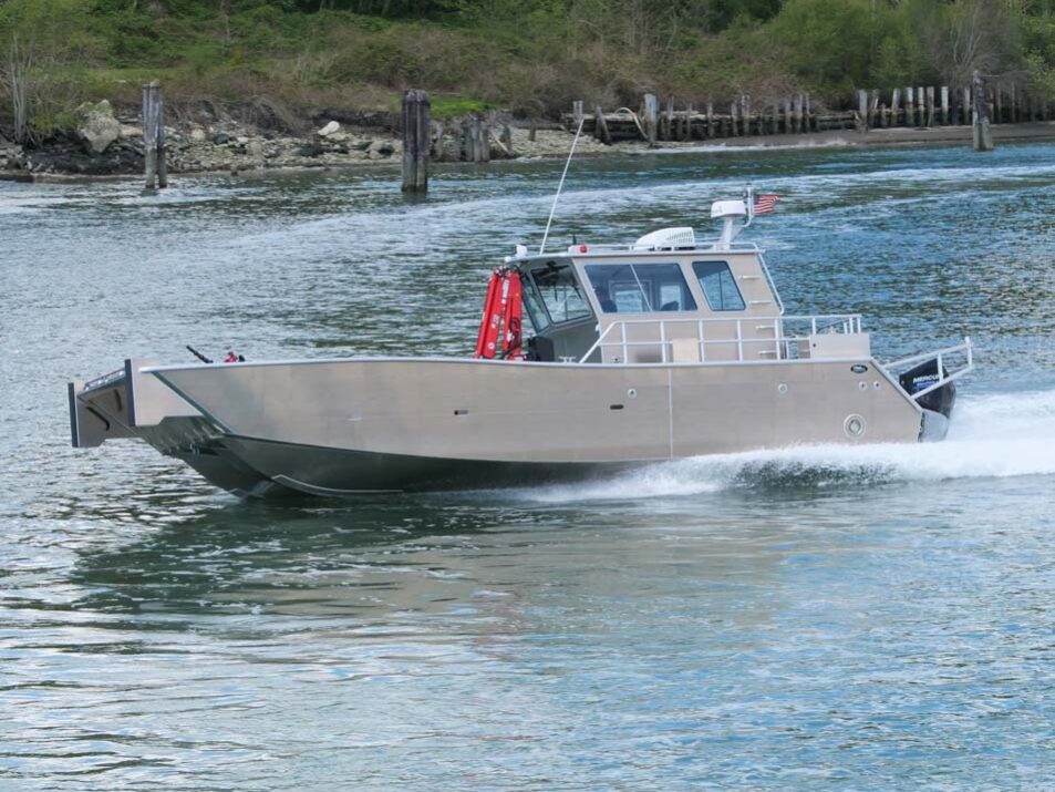Burnaby, BC: Western Canada Marine Spill Response Corporation operates a small fleet of Munson Boats, including four of these 38’ catamarans. Outfitting includes a heated cabin, pilot & co-pilot suspension seats, head compartment, tow post, engine guard, boom pen, davit with 12V windlass, port & starboard side doors and Raymarine radar/plotter/sounder with AIS.