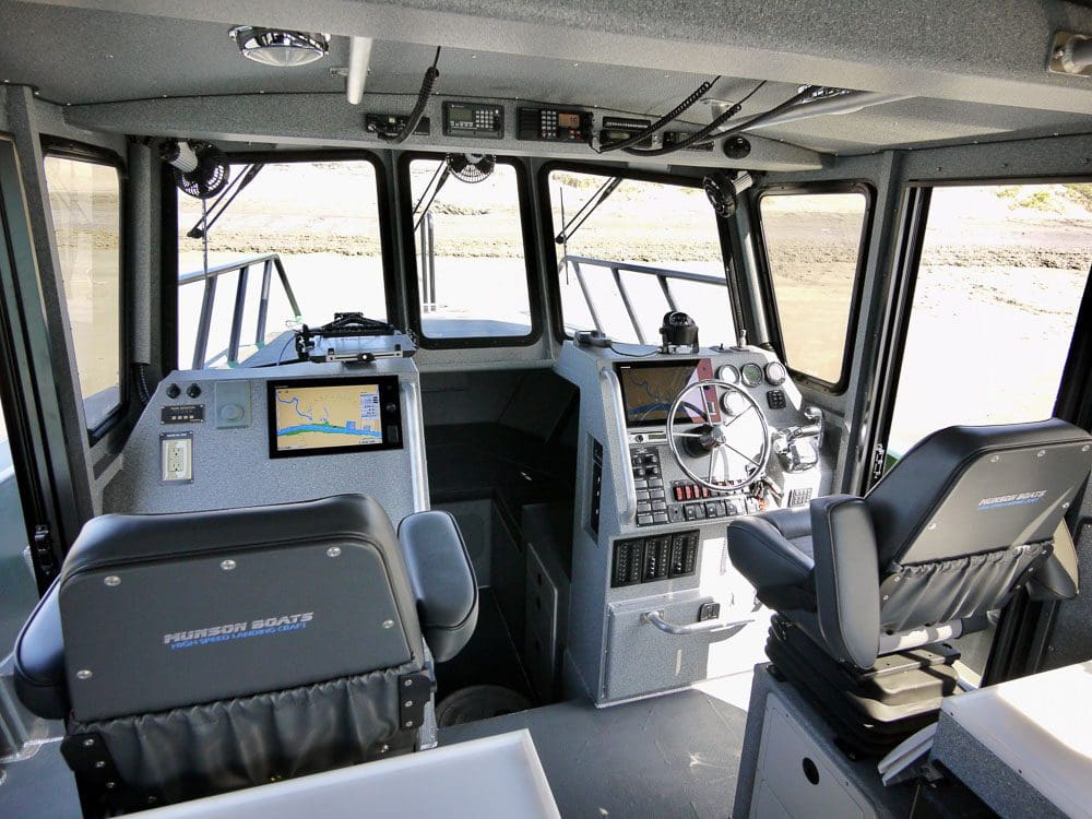 Burnaby, BC: Western Canada Marine Spill Response Corporation operates a small fleet of Munson Boats, including four of these 38’ catamarans. Outfitting includes a heated cabin, pilot & co-pilot suspension seats, head compartment, tow post, engine guard, boom pen, davit with 12V windlass, port & starboard side doors and Raymarine radar/plotter/sounder with AIS.