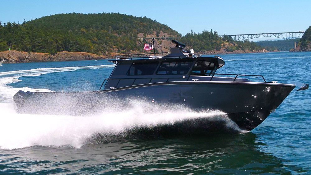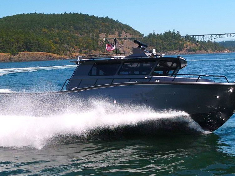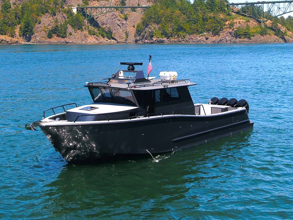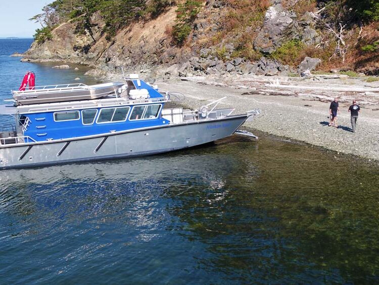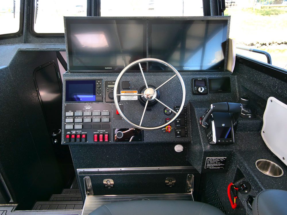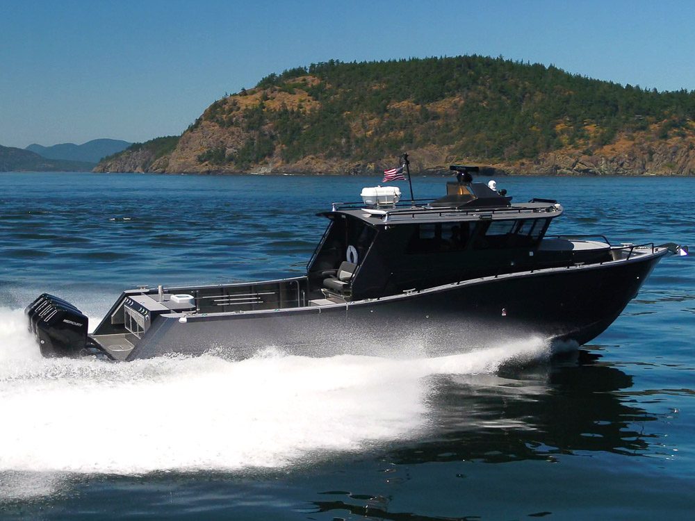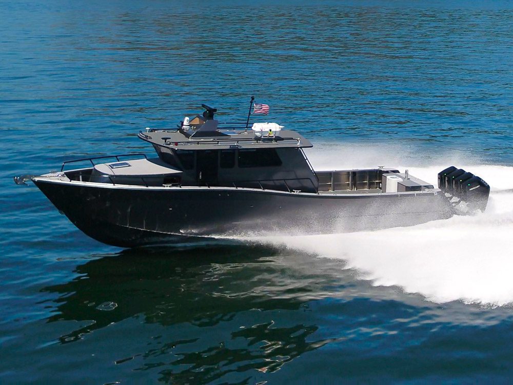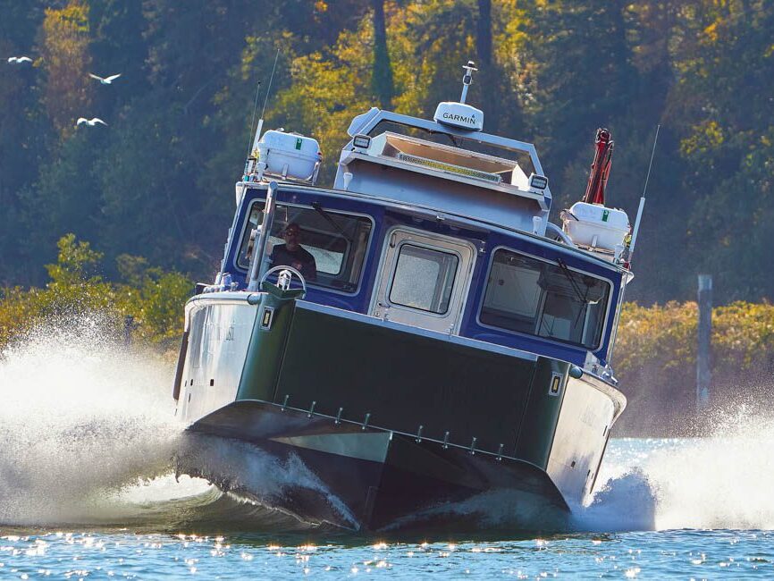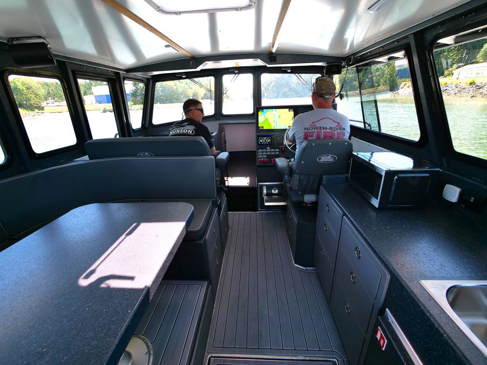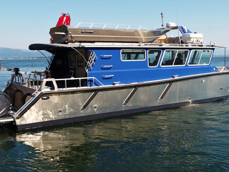 Sydney, BC: WCMRC is the only Transport Canada-certified marine spill response organization on Canada’s West Coast. WCMRC operates a small fleet Munson Boats including four of these 52 footers which are powered by twin 750 HP Scania diesels with Fernstrum closed loop keel coolers. Twin Hamilton 403 jets are operated with Glendinning Complete Controls 2 system with joystick piloting for precise maneuvering. Additional outfitting includes a bow control station, Maxilift ML330.4H deck crane with wireless controls, interceptor trim tabs, 3M vinyl wrap and Sonihull ultrasonic antifouling system.