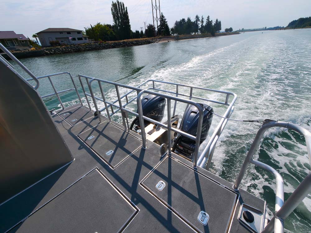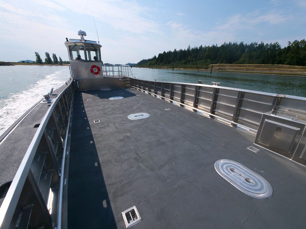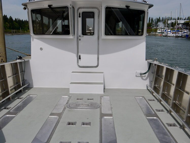 Coos Bay, OR: The Port of Coos Bay is a deep-draft coastal harbor and Oregon’s second busiest shipping port. The Port District selected this 24’ Packcat as multipurpose utility boat with bow A-frame for lifting 1000 lb. anchors for maintaining aids to navigation. Additional outfitting includes a tow post, engine guard, push knees and 500 lb lifting davit. Simrad navigation electronics, LED flood lights and a remote controlled spot light complete the package.