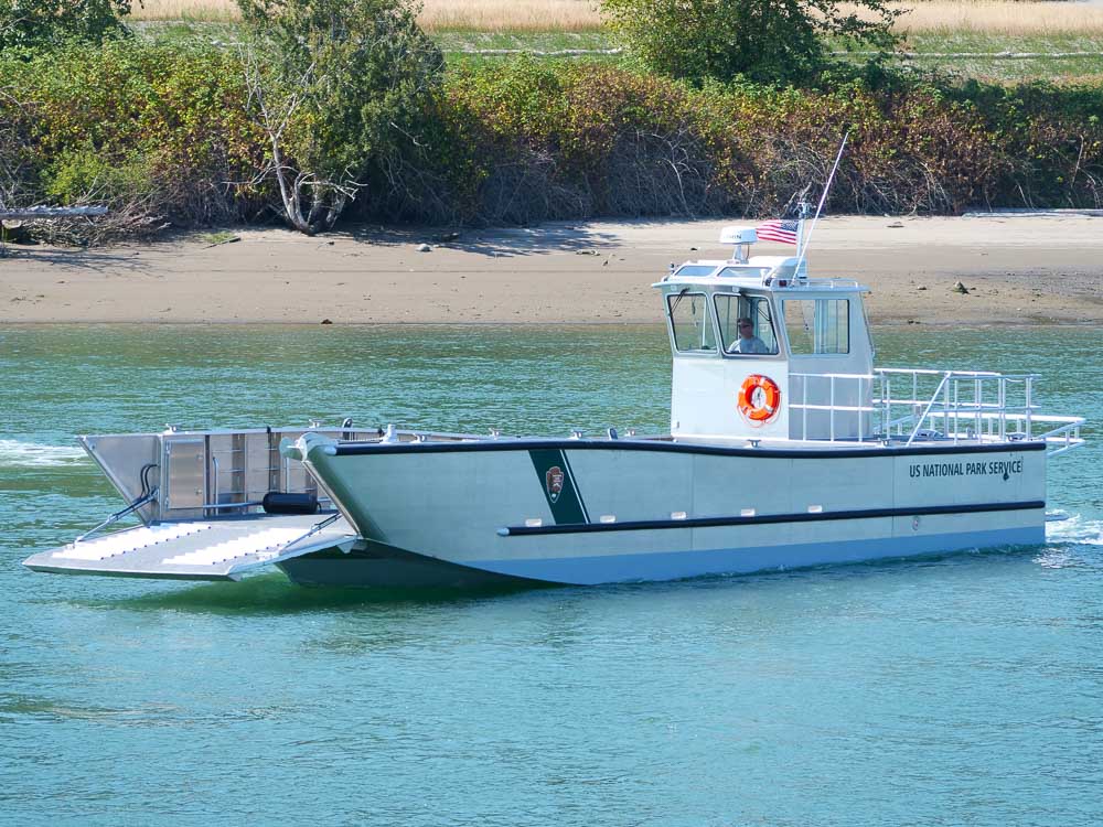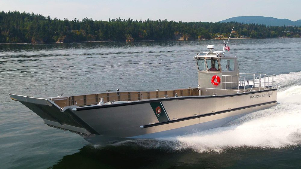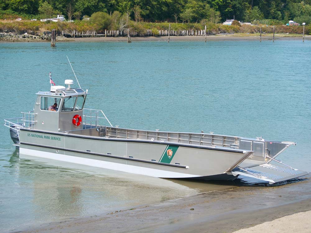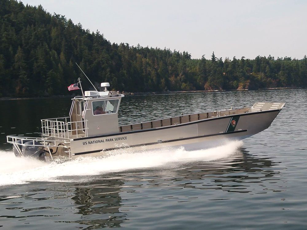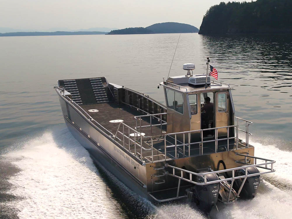 Sucia Island, WA: Located in Western Washington, the San Juan Islands are home to twelve State Parks, eight of which are only accessible by boat. Washington State Parks operates a pair of these 24’ Packcat catamaran landing craft to transport personnel and equipment and maintain their remote locations. Outfitting includes a remote-controlled LED spotlight, anti-fouling bottom paint, VHF radio, Garmin navigation suite and a galvanized Tuff Trailer.