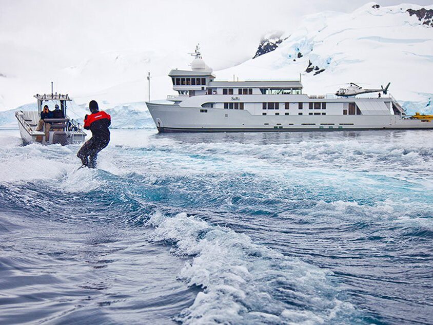 Majuro, Marshall Islands: M/V SuRI is a 201ft motor yacht that hosts Antarctic Peninsula cruises. They use Munson is used to transport a Yamaha Rhino UTV to shore. Other duties include crabbing, shrimping and lobster fishing responsibility. Four-way lifting eyes and a custom cradle allow her to be secured on deck, and inflatable Polyform fendering keeps the knocks at bay while tied alongside. A 48" T-top provides seating for two.