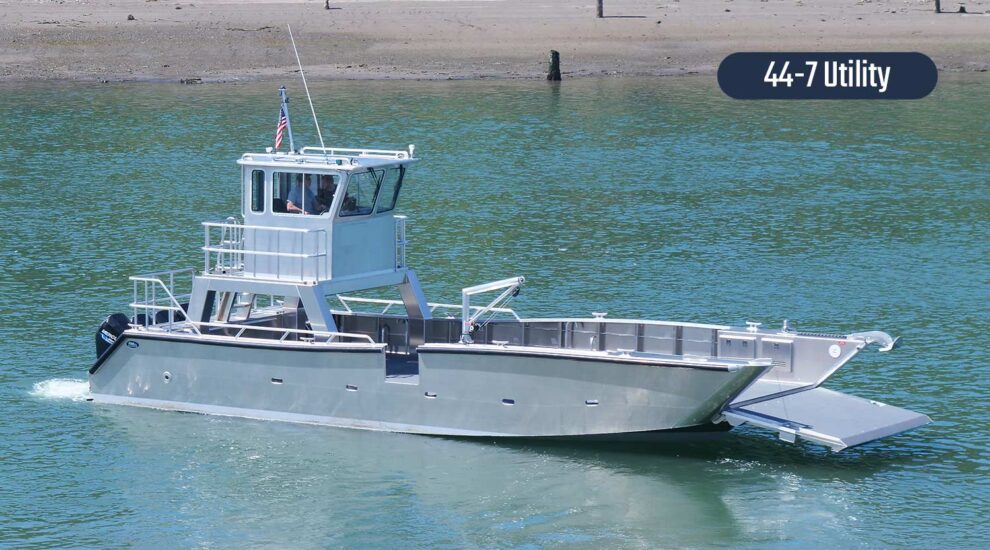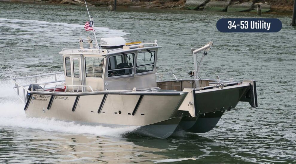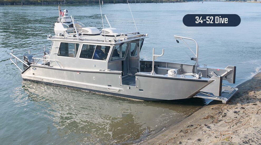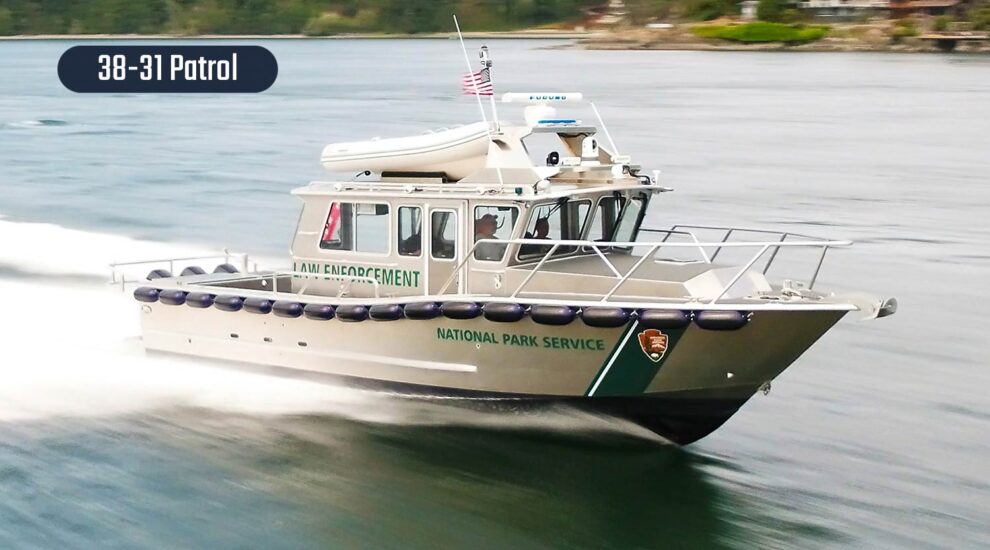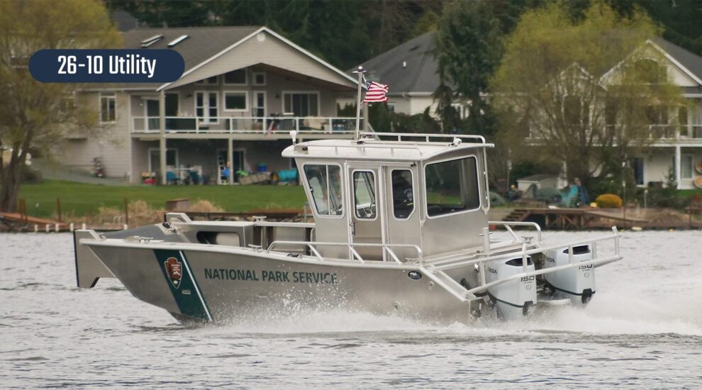 The National Park Service’s Submerged Resources Center uses their 32’ Packcat to continue their goal to inventory, document, and preserve submerged cultural and natural resources in our National Parks. Outfitting on their vessel includes a full width cabin with rooftop air conditioner, co-pilot station with cable passthroughs to the bow deck, 12V anchor windlass, lifting davit, bow door and side door dive ladders, tow post and engine guard.